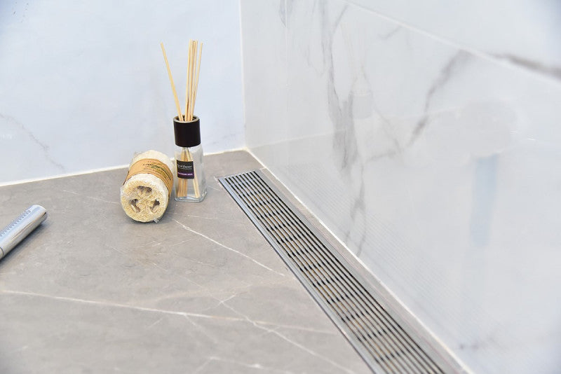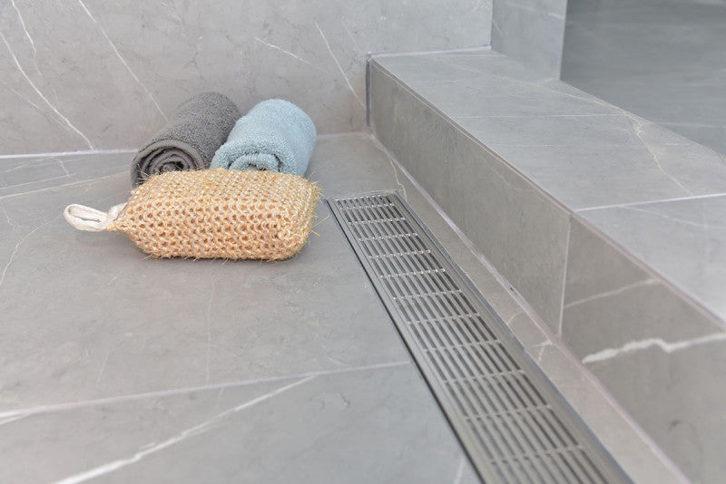 SereneDrains Linear Wedge Design Drains in a brushed finish offer a modern aesthetic with high performance, making them perfect for any shower or bathroom. These premium designer linear drains elevate your space with an elegant look while ensuring efficient water drainage. The removable tray simplifies maintenance, keeping your shower clean and fresh.