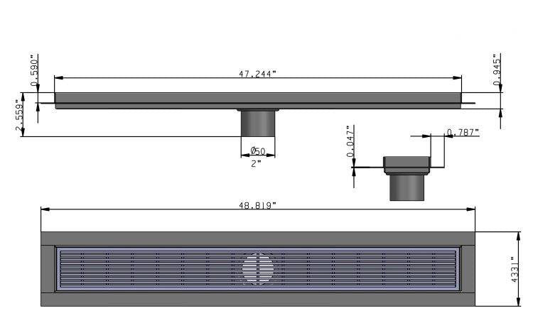 Why Choose SereneDrains: Our linear shower drain is constructed from durable 6-gauge (5mm) 304 stainless steel, including the flange, channel, and grate, ensuring superior protection against corrosion and rust. The Flange Body Edge is designed for easy installation with all types of waterproofing materials, such as 'Hot-Mop,' liquid membranes, sheet membranes, and vinyl waterproofing. Additionally, the shower drain is built without leveling feet, offering greater stability and simplifying installation by allowing the flange to rest directly on the floor edge. The frame is rounded (folded, not welded), making it twice as strong while ensuring a smooth, comfortable touch underfoot.