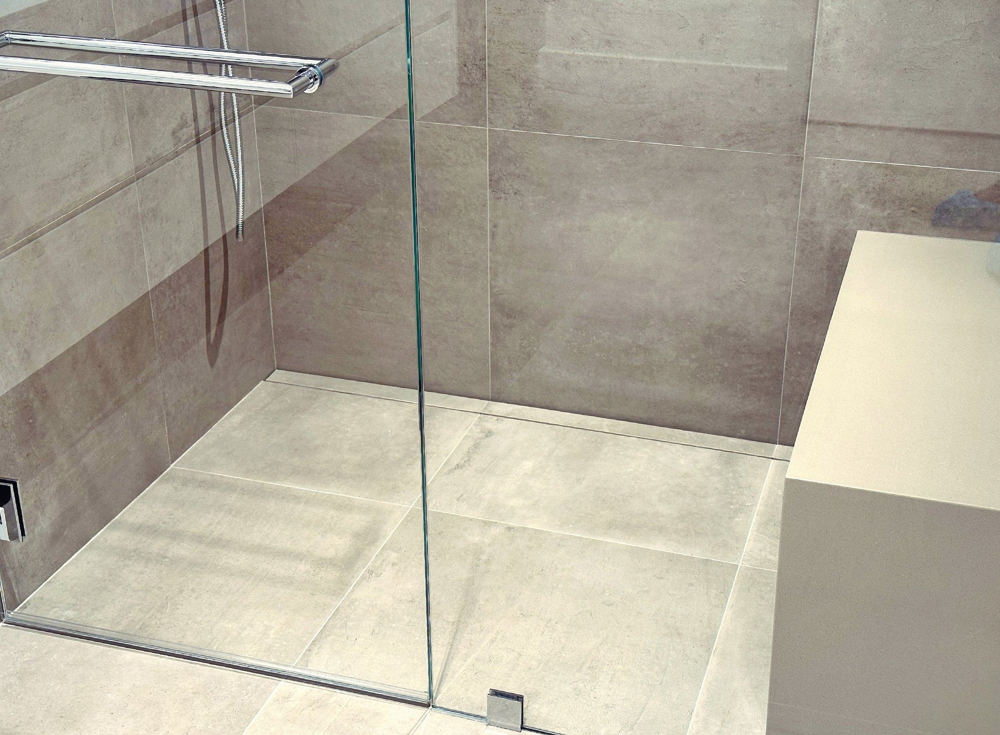 Premium linear drain that's Installed flush with the wall for a clean finished seamless look.