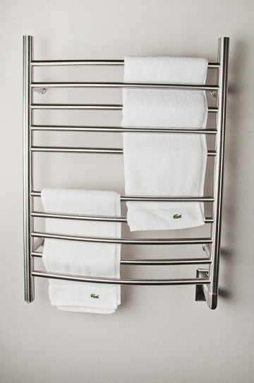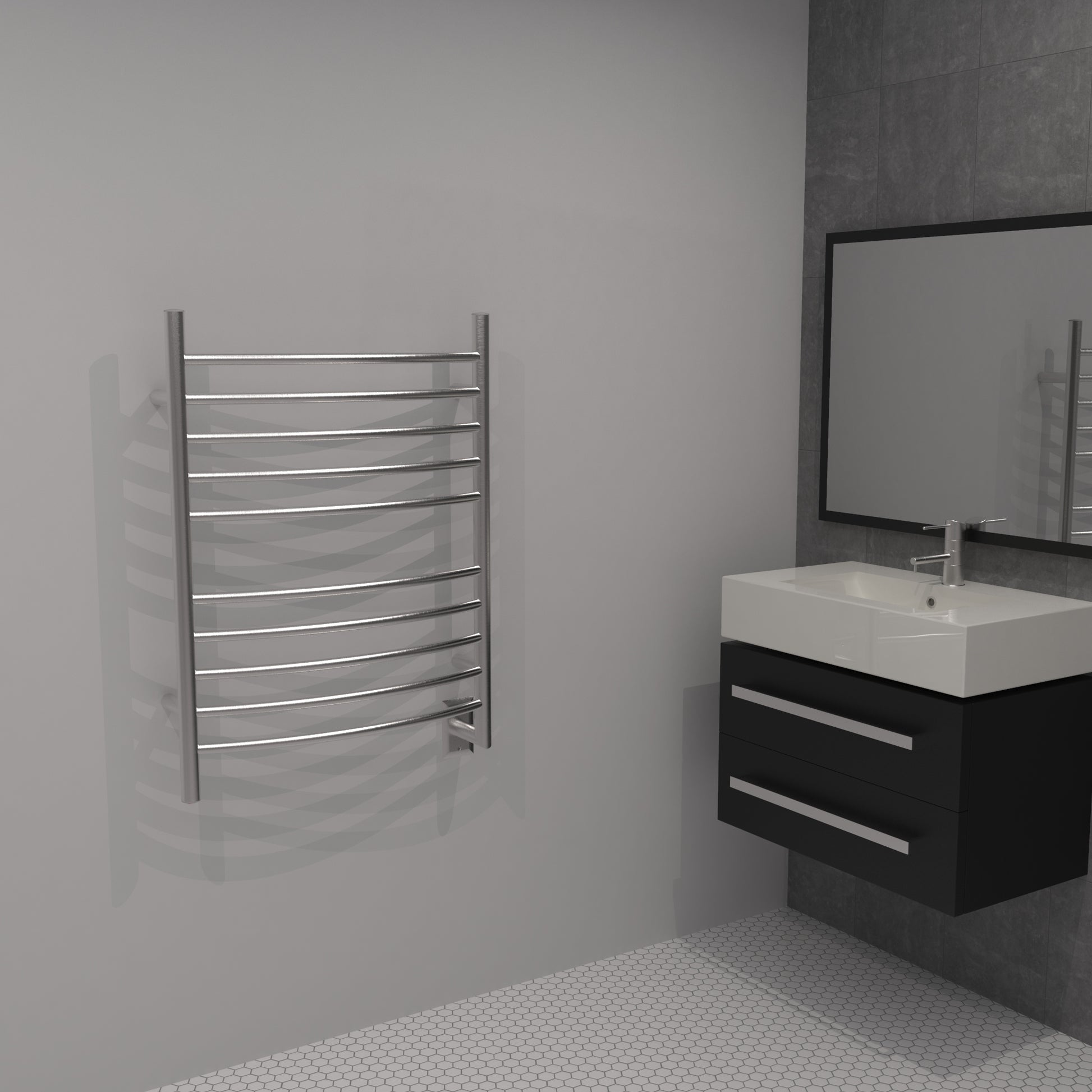 Brushed Towel Warmer, Amba Radiant, Hardwired Curved 10 Bar Towel Warmer