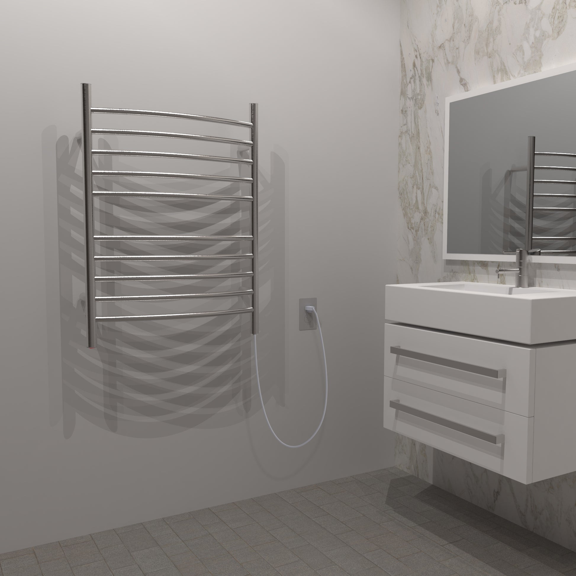 Brushed Towel Warmer, Amba Radiant Plug-in Curved 10 Bar Towel Warmer