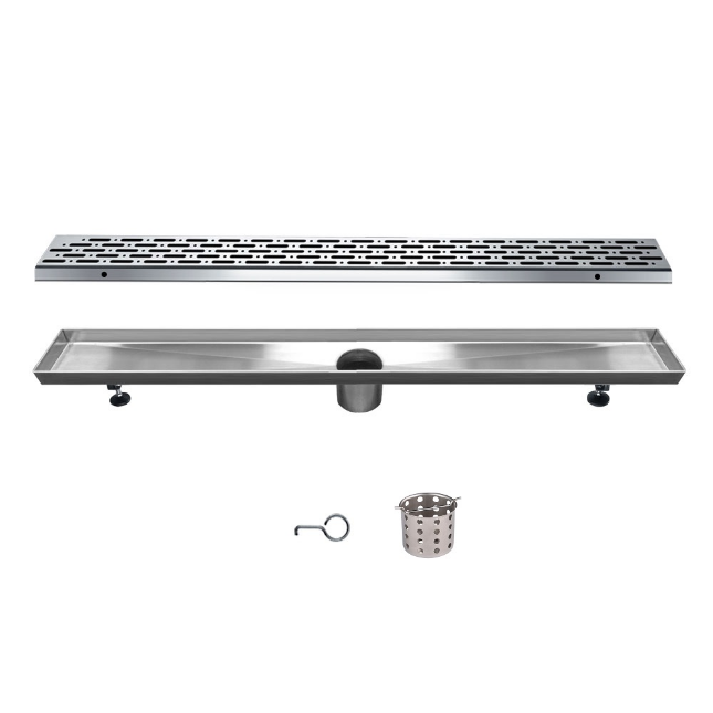The Adjustable Linear Drain is designed to facilitate installation, provide stability, and adapt to varying heights, ensuring precise alignment with the shower floor surface. Equipped with adjustable feet, installers can precisely adjust the height of both ends to be level with the ground before pouring concrete into the shower base. This feature is highly beneficial in situations where the floor isn't perfectly level or in other complex installations.