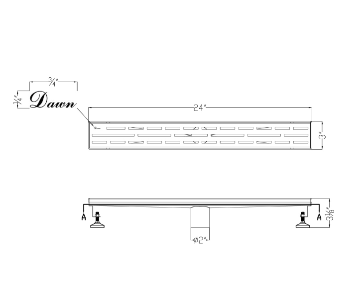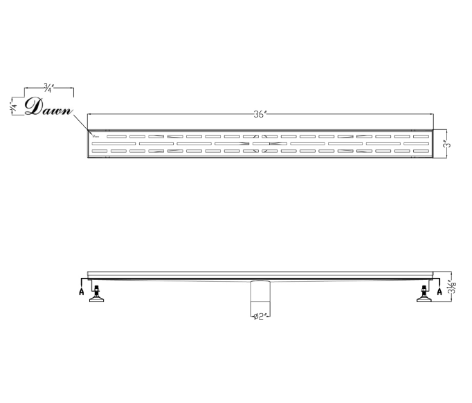 Dawn® Amazon Series, 36 Inch Shower Linear Drain, 14G, 304 Stainless Steel, Polished Satin Finish.
