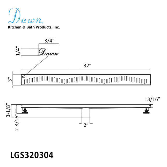 Dawn® Ganges River Series 36 Inch Shower Linear Drain 14G, 304 Stainless Steel, Polished Satin Finish.