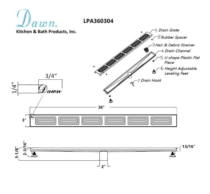Dawn® 36 Inch Drains are of superior workmanship to ensure the highest quality and are available in various styles to suit the décor of your home. Crafted from 6-, 9-, 11-, 14-, or 18-gauage 304-type stainless steel, Dawn shower drains are durable and long lasting, and offer light to heavy duty solutions with excellent flow capacity. This fixture is part of Dawn's decorative Collection, so make sure to check out other contemporary fixtures to accessorize your room.