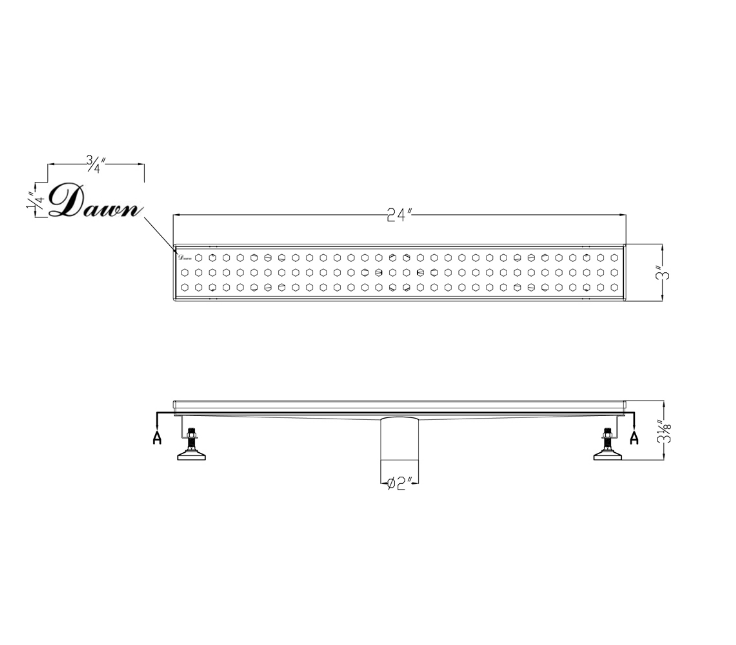 Dawn® Thames River Series, 36 Inch Shower Linear Drain, 14G, 304 Stainless Steel, Polished Satin Finish.