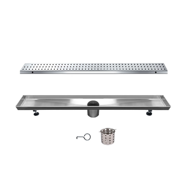 Included: 100% stainless steel channel body & grate, adjustable leveling feet, Installation instruction.