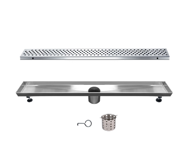 Included: 100% stainless steel channel body & grate, adjustable leveling feet, Installation instruction.