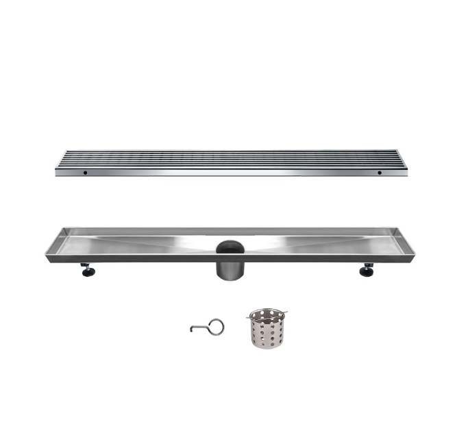 Included: 100% stainless steel channel body & grate, adjustable leveling feet, Installation instruction.