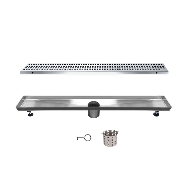 Included: 100% stainless steel channel body & grate, adjustable leveling feet, Installation instruction.