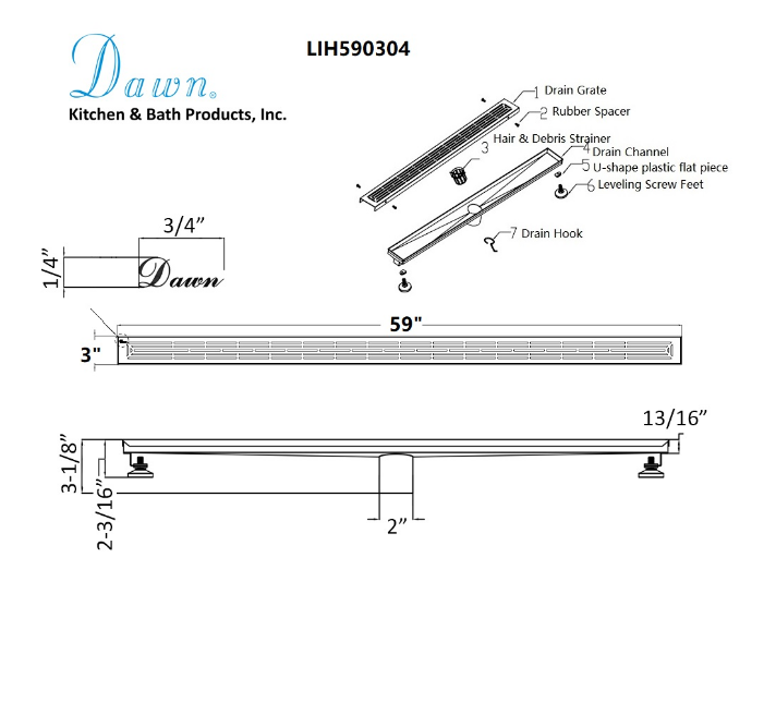 Dawn® Linear Drains are of superior workmanship to ensure the highest quality and are available in various styles to suit the décor of your home. Crafted from 6-, 9-, 11-, 14-, or 18-gauage 304-type stainless steel, Dawn shower drains are durable and long lasting, and offer light to heavy duty solutions with excellent flow capacity. This fixture is part of Dawn's bathroom accessories decorative collection, so make sure to check out other contemporary fixtures to accessorize your room.