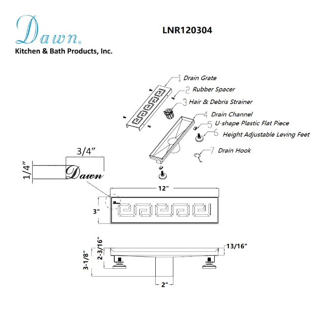 Bought Separately (Recommended): Dawn PVC or Cast Iron drain base with rubber gasket, Dawn drain hook (puller key), Dawn hair strainer. Buy Here: Complete shower drain installations kits