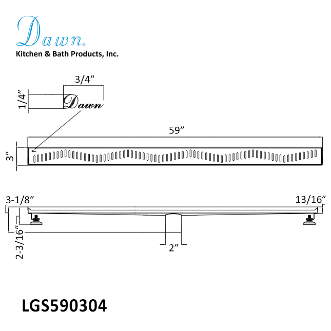 Dawn® Ganges River Series, 47 Inch Shower Linear Drain, 14G, 304 Stainless Steel, Polished Satin Finish.