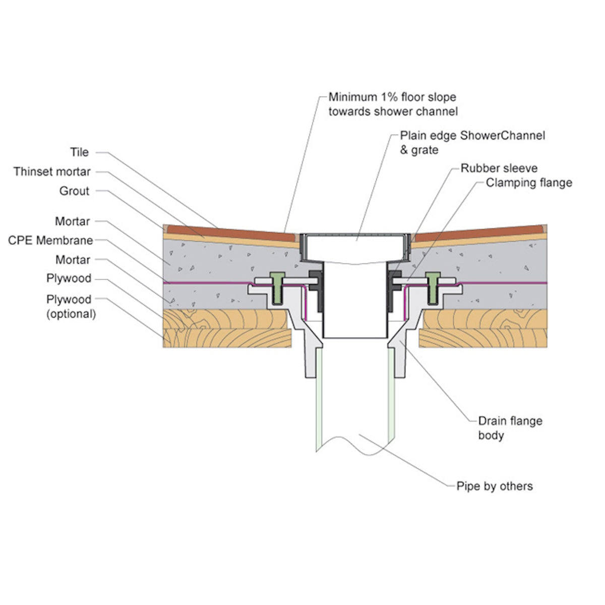 - Pre-sloped channel for efficient drainage