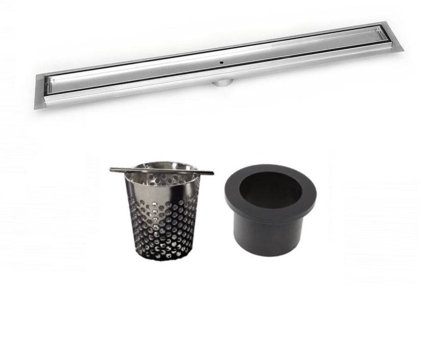 Drain Includes: 100% stainless steel channel body & grate, puller key, hair trap, waterproofing membrane sheet around the drain flange (not required but included), Installation Instruction. (Hair Trap is a stainless steel strainer that sits inside the 2" diameter outlet. Clean strainer regularly).
