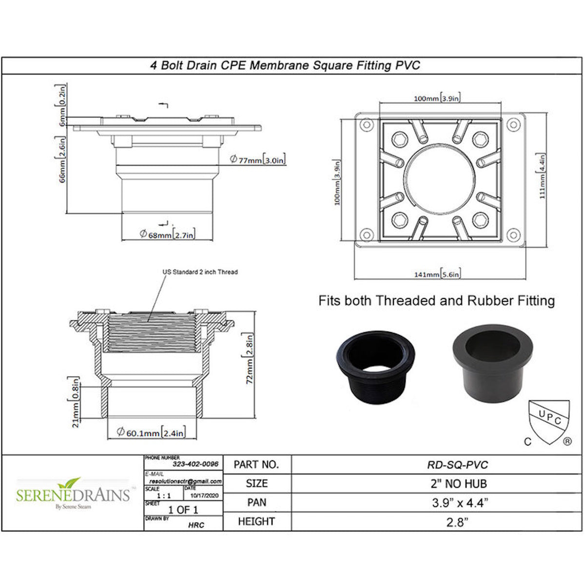 - Flange edge compatible with all waterproofing methods: hot mop, liquid membrane, sheet membrane, vinyl, and more