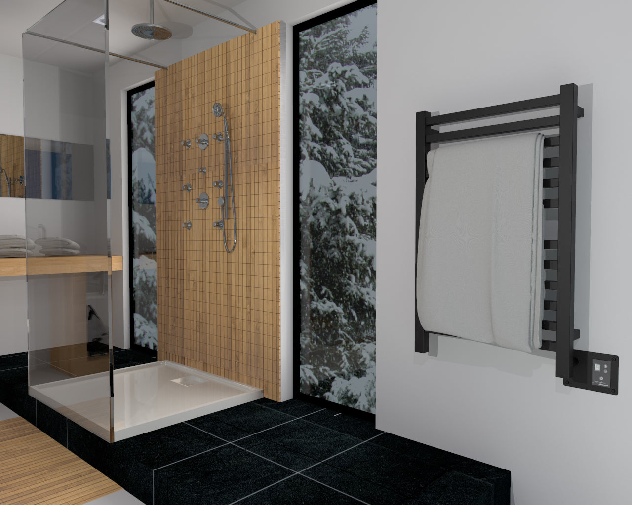 Matte Black Towel Warmer, Amba Quadro Model Q2033MB, 12 Bars Towel Warmer