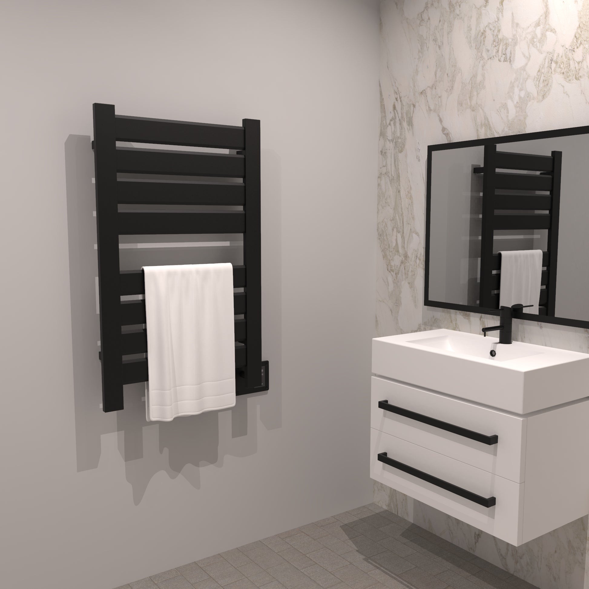 Matte Black Towel Warmer, Amba Vega Model V2338MB, 8 Bars Towel Warmer
