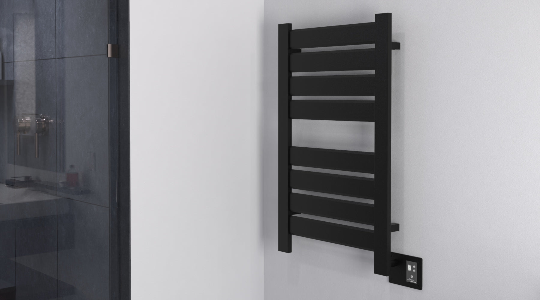 Matte Black Towel Warmer, Amba Vega Model V2338, 8 Bars Towel Warmer