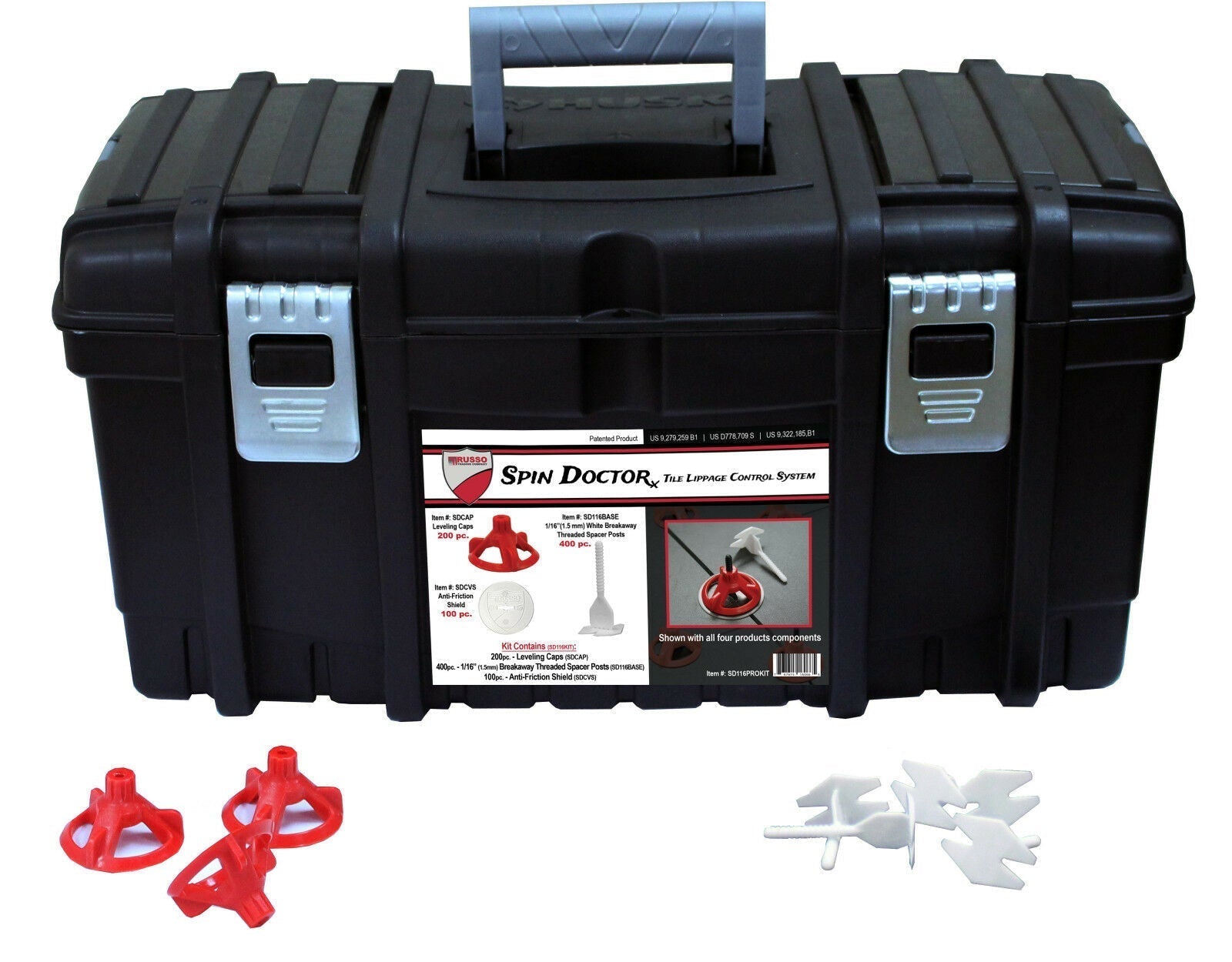 Spin Doctor PRO Tile Leveling System Kit for Shower Tile Installation – 200 Caps, 500 Bases, 100 Shields