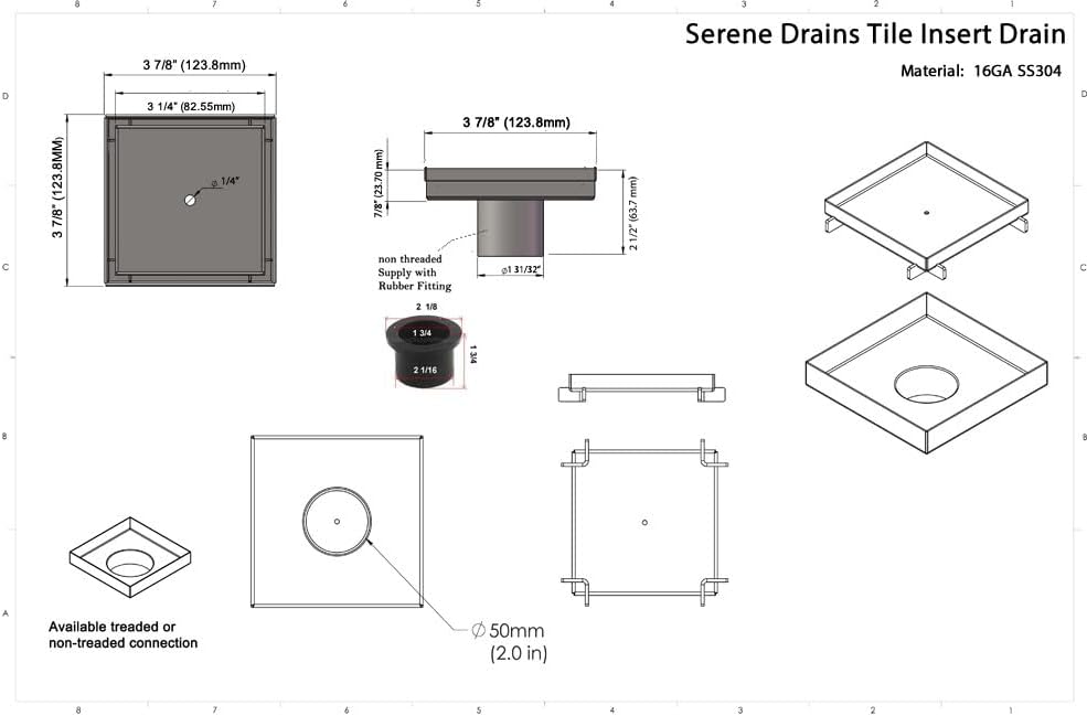 The SereneDrains Square Shower Drain Tile Insert in brushed stainless steel stands out as a versatile and stylish solution for enhancing your shower experience. Crafted from high-quality 304 brushed stainless steel, this square shower drain is not only visually appealing but also ensures durability, corrosion resistance, and long-lasting performance. The brushed finish adds a touch of modernity to your bathroom design, elevating the overall aesthetic.