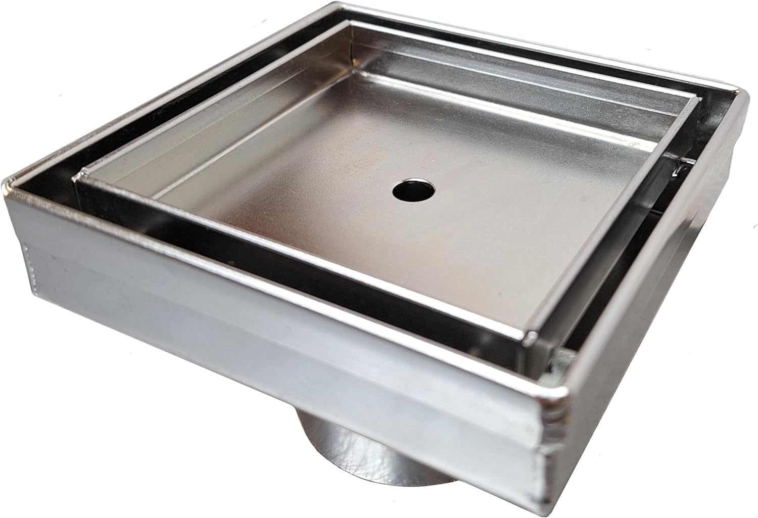 Tile Insert 4 Inch Square Shower Drain, Brushed Stainless, SereneDrains