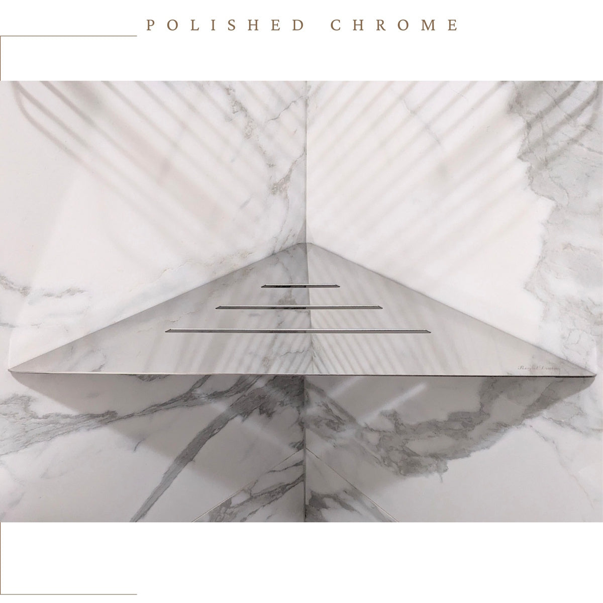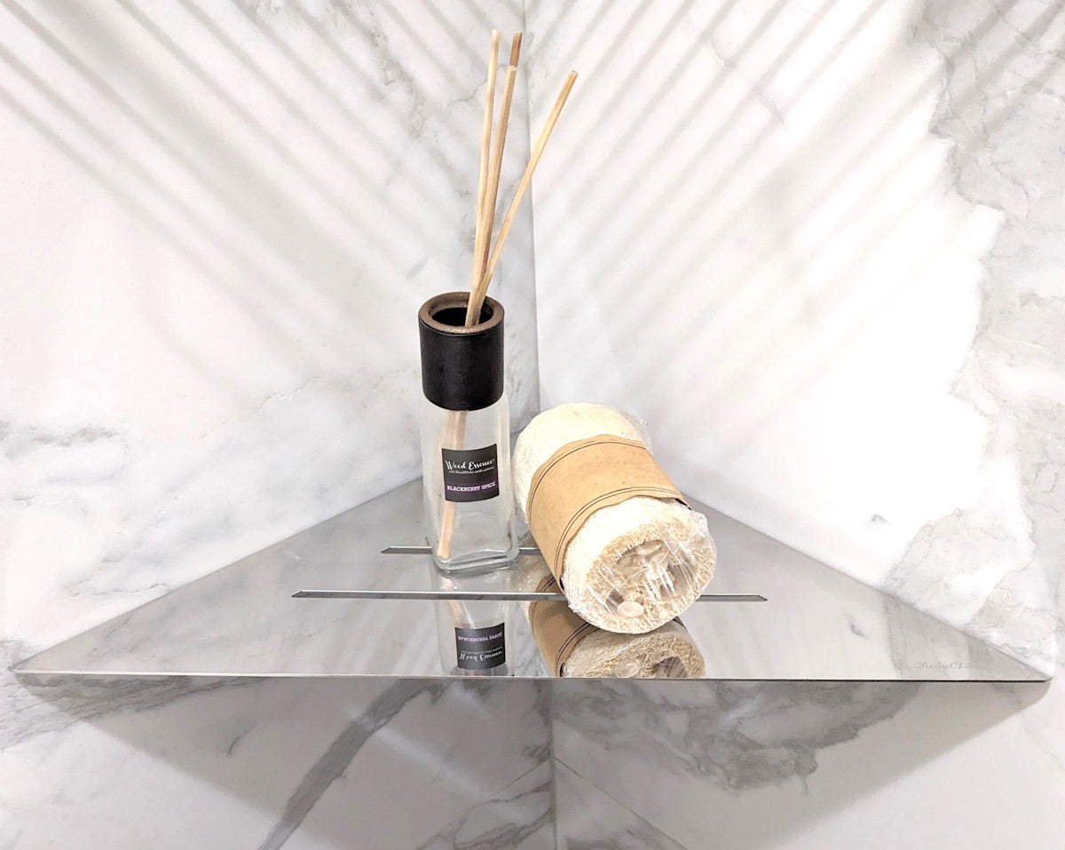Corner Shower Caddy, 12 Inch Wall Mount Triangle Shower Shelf, Polished Chrome Stainless Steel Shower Shelf or Foot Prop by SereneDrains